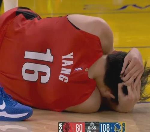 杨瀚森打NBA老是头部遭受重击,打勇士倒地争抢地板球过程中后脑勺撞到理查德膝盖,好在没有大碍,返回更衣室检查一会儿就重返赛场。