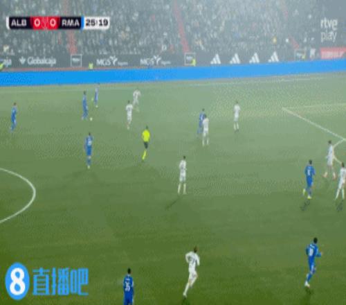 上半场伤停补时2分钟,半场结束,皇马暂1-1阿尔瓦塞特。